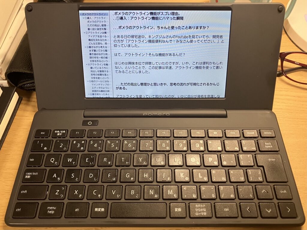 ポメラのアウトラインは、ただの文章補助機能ではなく、自分の考え方を映し出す鏡のような機能なのだと思います。
